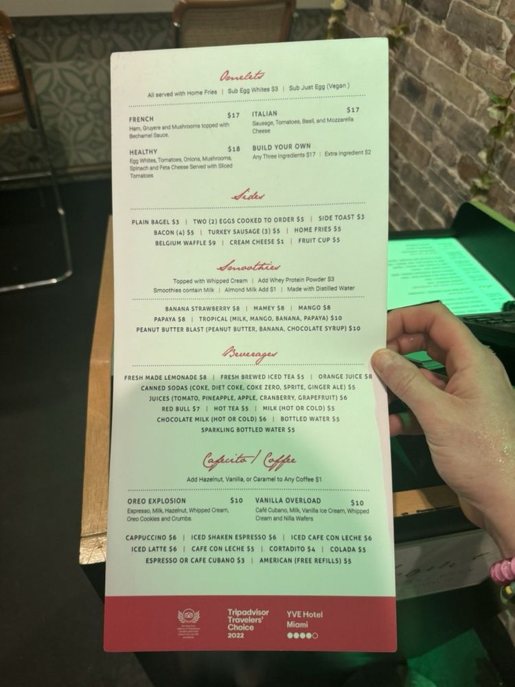 Don't miss the Le French Toast, a creative take on a classic, made with raisin challah, custard, and caramelized sugar at $17. For a taste of Cuban tradition, indulge in their crispy empanadas and homemade corn tamales served alongside zesty pico de gallo.