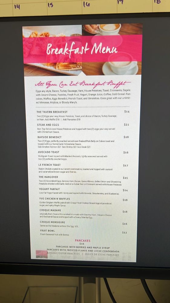 Welcome to Biscayne Tavern Miami, where vibrant Cuban-inspired breakfast and brunch offerings await you at 146 Biscayne Blvd. This bustling tavern presents a menu that celebrates traditional flavors with a modern twist. Dive into the Tavern Breakfast, featuring two eggs prepared to your liking, paired with ham or turkey sausage, house potatoes, and toast for just $14. For a lighter option, savor their delightful Avocado Toast with perfectly poached eggs on multigrain toast, priced at $16.